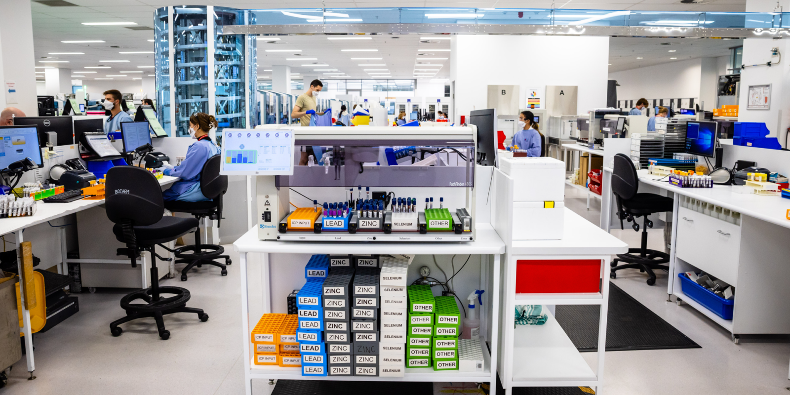 - Samples loaded into racks or trays